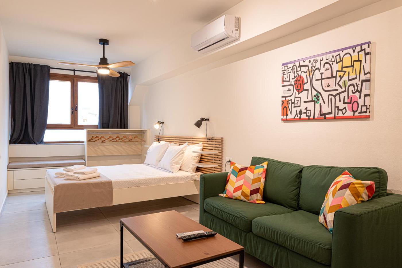 Studio Apartment. Featuring a private entrance, this air-conditioned apartment consists of 1 living room, 1 separate bedroom and 1 bathroom with a shower and a hairdryer. Guests can make meals in the kitchen that is equipped with a stovetop, a refrigerator, kitchenware and an oven. The apartment provides a washing machine, a tea and coffee maker, a seating area, a flat-screen TV with streaming services, as well as city views. The unit offers 1 bed.