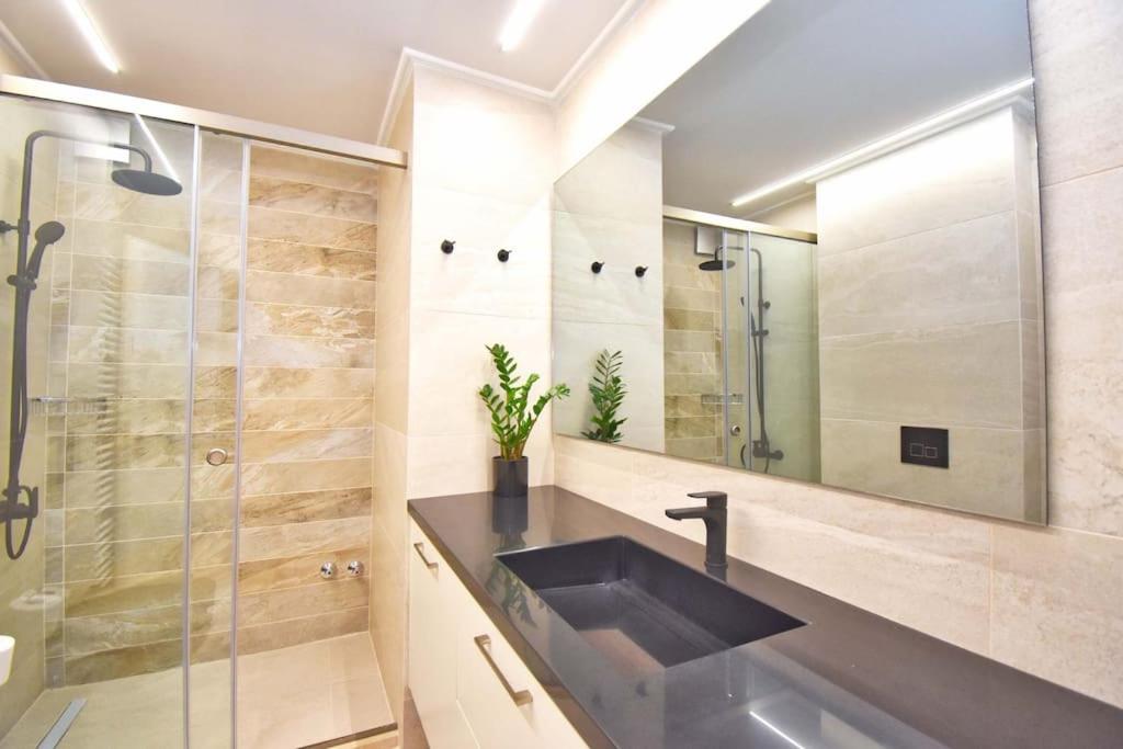 Three-Bedroom Apartment. This apartments special feature is the fireplace. This spacious apartment comprises 1 living room, 3 separate bedrooms and 2 bathrooms with a walk-in shower and free toiletries. Guests can make meals in the kitchen that comes with a stovetop, a refrigerator, a dishwasher and kitchenware. The air-conditioned apartment provides a flat-screen TV, a washing machine, soundproof walls, a tea and coffee maker as well as sea views. The unit offers 4 beds.